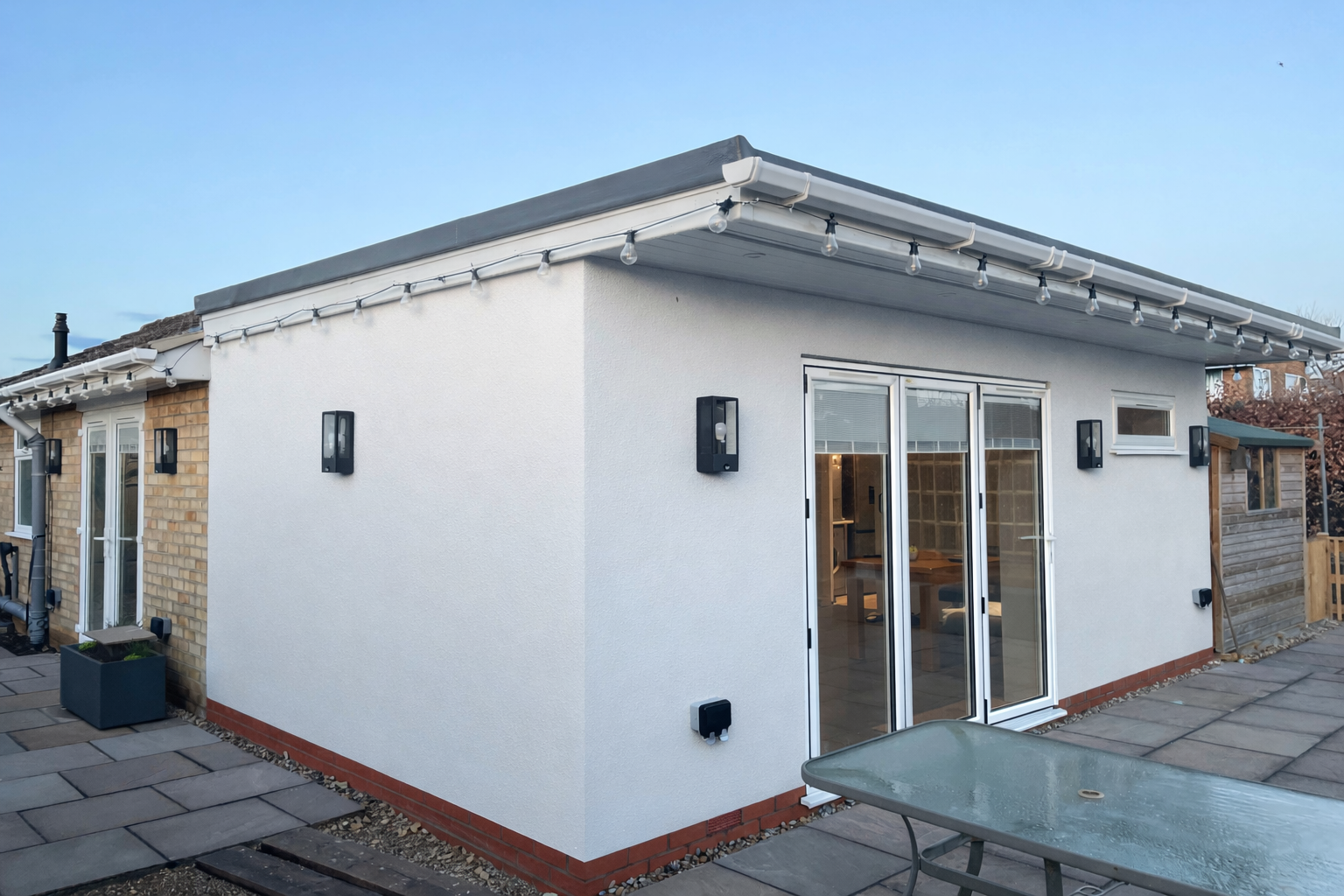 The extension is carefully proportioned to sit comfortably alongside the original building, with materials selected to match the existing property and reinforce a sense of continuity. Glazed patio doors provide controlled views and daylight while maintaining privacy and enclosure. The project demonstrates a considered, contextual approach to small-scale residential design, where light, simplicity, and restraint are central to the architectural response.