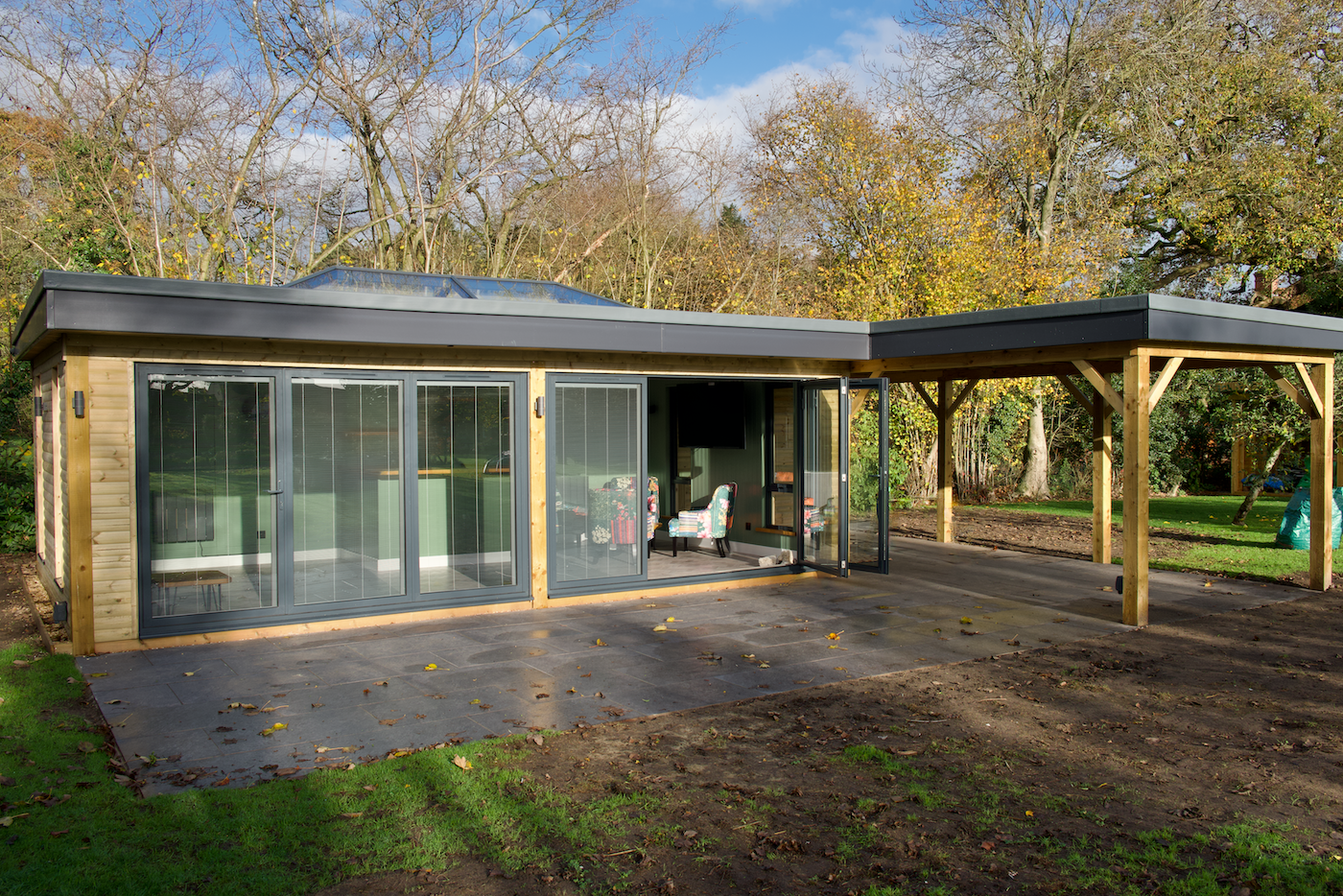 The Ivy Holme Summerhouse sits effortlessly within the garden, its careful material palette and refined detailing creating an inviting, all-season retreat for every member of the family.